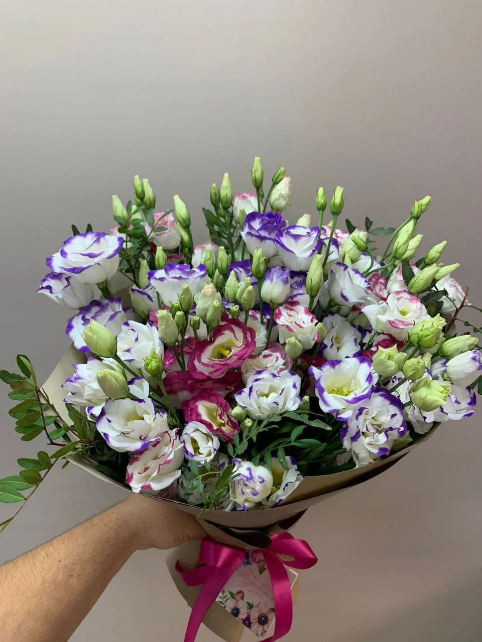 • Премиум - эустома - 15 шт., зелень, упаковка, лента