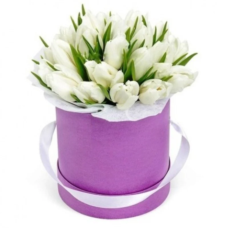 —Шляпная коробка с белыми тюльпанами